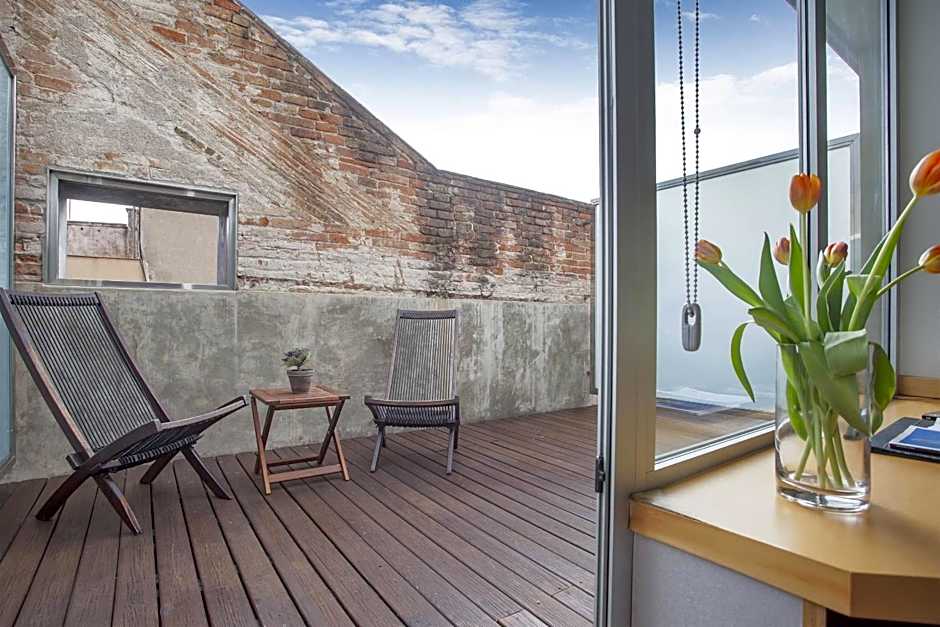 The room has a 10 square yard terrace with 2 sun beds and a table.